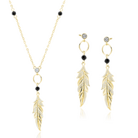 Srebrny pozłacany naszyjnik pr.925 z czarnymi spinelami i cyrkonią - piórko