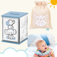 Skarbonka dwa słoniki dla chłopca z grawerem - prezent na Chrzest Św. roczek, urodziny