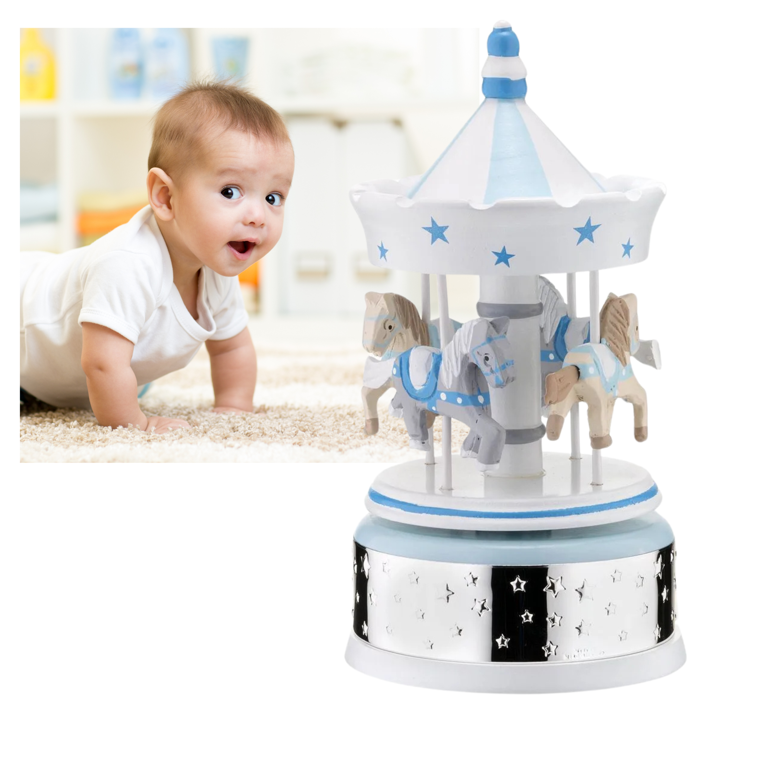 Karuzele z pozytywką łączą klasyczne piękno z delikatną funkcją ruchu i dźwięku. Obracające się figurki – misie, koniki, aniołki czy gwiazdki – przyciągają wzrok dziecka i stymulują jego zmysły. To pierwsze doświadczenie z rytmem i muzyką, które rozwija wrażliwość malucha .Karuzela z pozytywką to nie tylko zabawka – to małe dzieło sztuki, które porusza wyobraźnię dziecka i dorosłych. Delikatnie obracające się figurki w rytm subtelnej melodii wprowadzają atmosferę spokoju i bezpieczeństwa. Dla maluszka to pierwsze doświadczenie z muzyką, rytmem i ruchem, a dla rodziców – chwila wytchnienia i zachwytu.