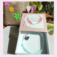 Prezent dla Córki bransoletka sznurek w kolorze mięty z zawieszką w kształcie serduszka