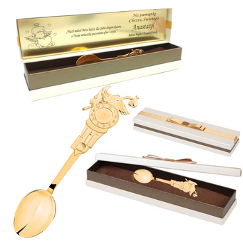 Srebrna pozłacana łyżeczka dla dziecka bocian pr.925 grawer Gratis