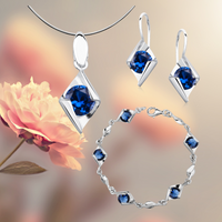 Komplet biżuterii wisiorek kolczyki i bransoletka srebro szafirowa cyrkonia