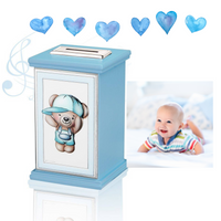 Skarbonka z pozytywką miś dla Chłopca grawer - prezent na Chrzest Św. roczek, urodziny
