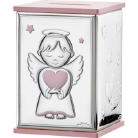 Skarbonka z aniołkiem z sercem dla dziewczynki z grawerem- prezent na I Komunię Św.
