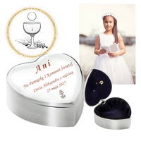 Szkatułka serce z pozytywką i grawerem prezent na komunię św.