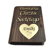 Szkatułka, Drewniane PUDEŁKO NA PIENIĄDZE Biżuterię Życzenia PREZENT na Chrzest Św.