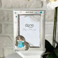 RAMKA SREBRNA NA ZDJĘCIE MIŚ PREZENT DLA CHŁOPCA CHRZEST ROCZEK URODZINY