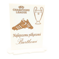 Personalizowana statuetka piłkarska na szkle akrylowym – prezent dla małego piłkarza