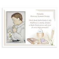 Obrazek srebrny pamiątka pierwszej komunii świętej kolorowy dla chłopca