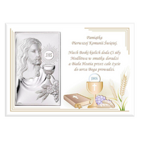Obrazek srebrny pamiątka pierwszej komunii świętej kolorowy